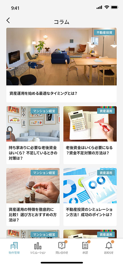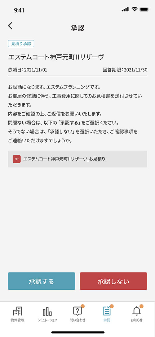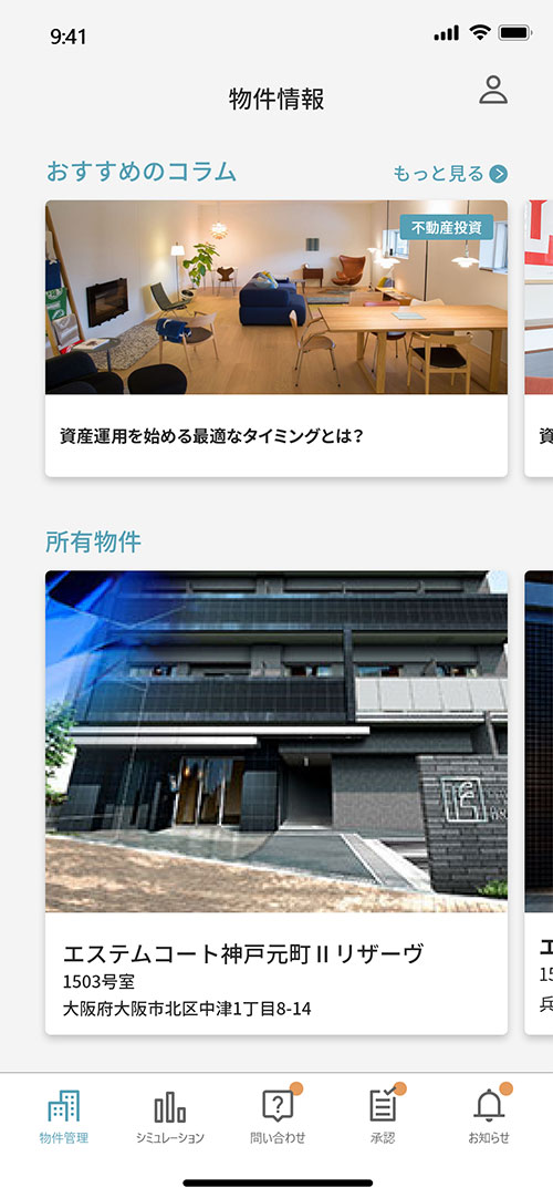 あなたの物件の情報をいつでも簡単に確認できる他、暮らしや運用に関わる手続き、お問い合わせなど煩わしいやり取りは、このアプリで簡単に管理できます。