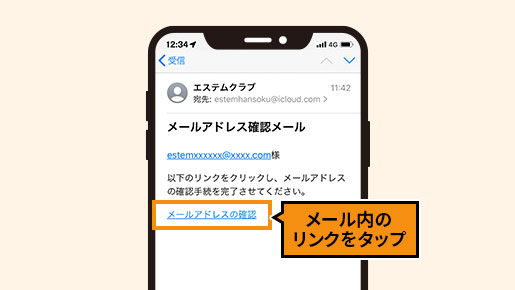 メールの受信確認のためご登録いただいたメールアドレスに「エステムクラブ」から確認メールが届きます。