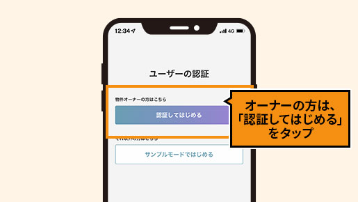 オーナーの方は、「認証してはじめる」をタップしてください。