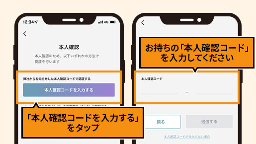 「本人確認コードを入力する」をタップし、弊社からご連絡させていただいた「本人確認コード」を入力してください。